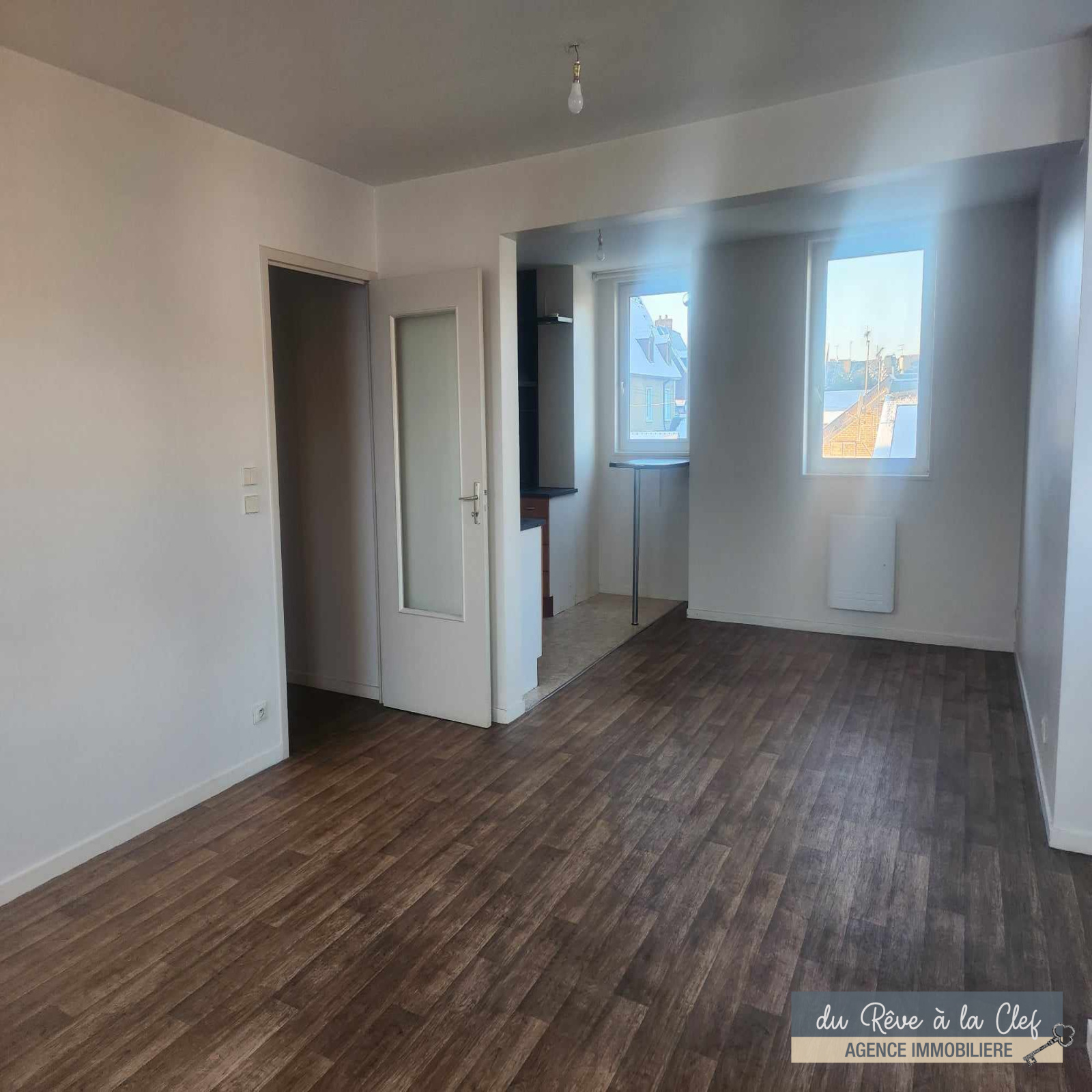 L'agence Du rêve à la Clef, vous propose en location, un appartement au 2ème étage d'une petite résidence en plein coeur de Bernay, comprenant une entrée avec placard-penderie, une cuisine aménagée et équipée ouverte sur un séjour-salon, 2 chambres, une salle de bains, un wc. Chauffage électrique.Double vitrage.